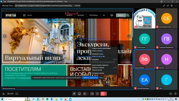 Тифлокомментарий: На скриншоте процесс дистанционного обучения по программе «Специалист по доступности цифрового контента».
